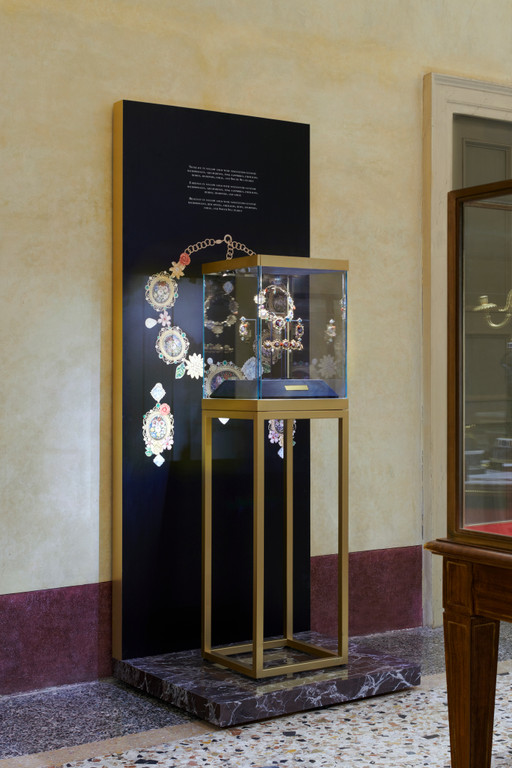 In occasione della mostra Dal Cuore alle Mani dedicata alla creatività di Dolce&Gabbana, Palazzo Reale intende valorizzare il suo patrimonio storico-artistico e restituire alla visione del pubblico alcuni pezzi storici, un tempo parte delle sue collezioni, mettendoli in dialogo con le creazioni di alta gioielleria e design dei due stilisti.
