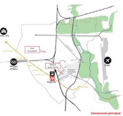 • la realizzazione di un sistema di trasporto pubblico su rotaie, estensione di quello esistente, che collega la stazione ferroviaria di Rogoredo con la nuova fermata Forlanini della linea 4, in grado di penetrare nell’area e servire in modo efficace le diverse aree funzionali;
