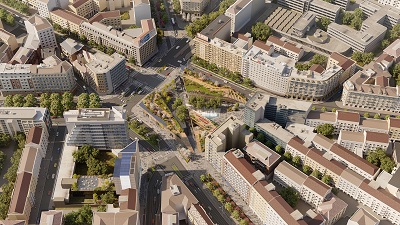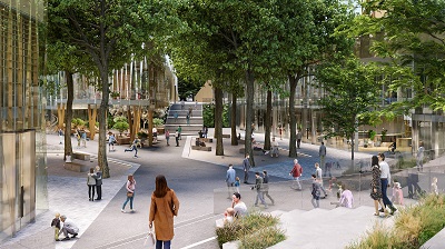 Partendo da una revisione strategica della mobilità dell’area, capace di ridurre la superficie carrabile del 50% preservando la perfomance di circolazione esistente, il progetto restituisce alla città 24.000 mq di spazio pubblico, di cui oltre 12.000, organizzati su piazze a tre livelli, ospitati nell’area dell’attuale Piazzale intorno alla fermata della metropolitana Loreto, al centro di LOC.