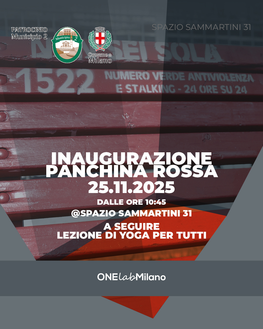 In occasione della Giornata internazionale per l'eliminazione della violenza contro le donne, ONElabMilano ha organizzato un evento dedicato all'inaugurazione della panchina rossa installata all'interno dell'area sportiva, a seguito del restauro di quella già esistente.
