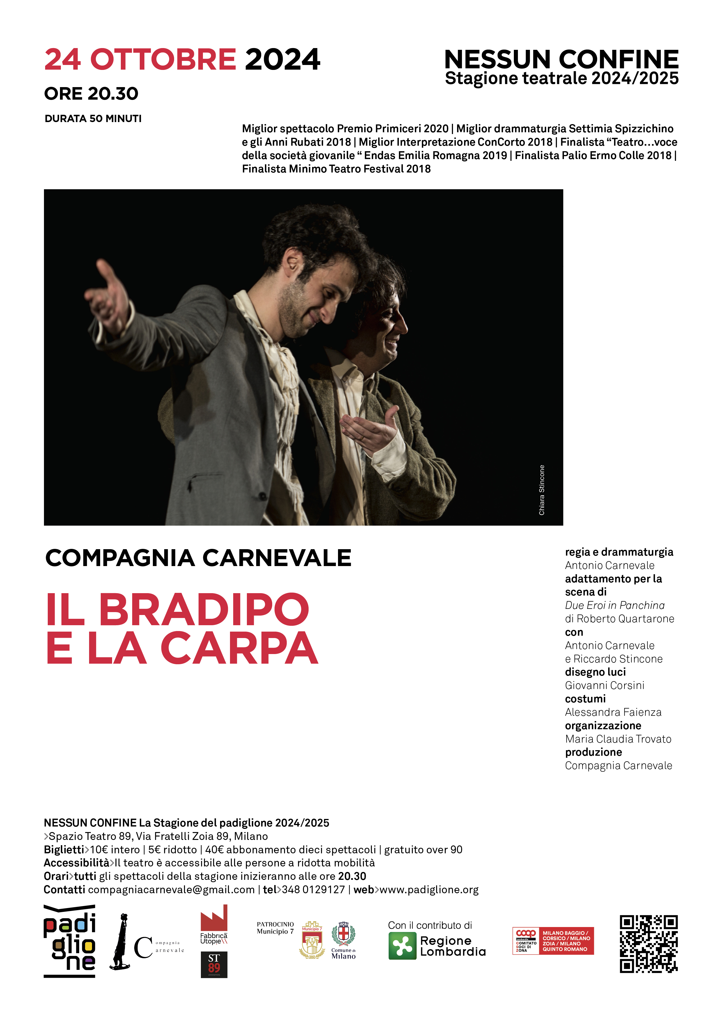 Milano, 22 ottobre 2024 - Torna la rassegna teatrale Nessun Confine, giunta alla terza edizione, con lo spettacolo inaugurale della nuova stagione: Il Bradipo e la Carpa, che andrà in scena a Milano giovedì 24 ottobre ore 20:30, presso lo Spazio Teatro 89.